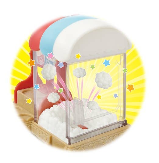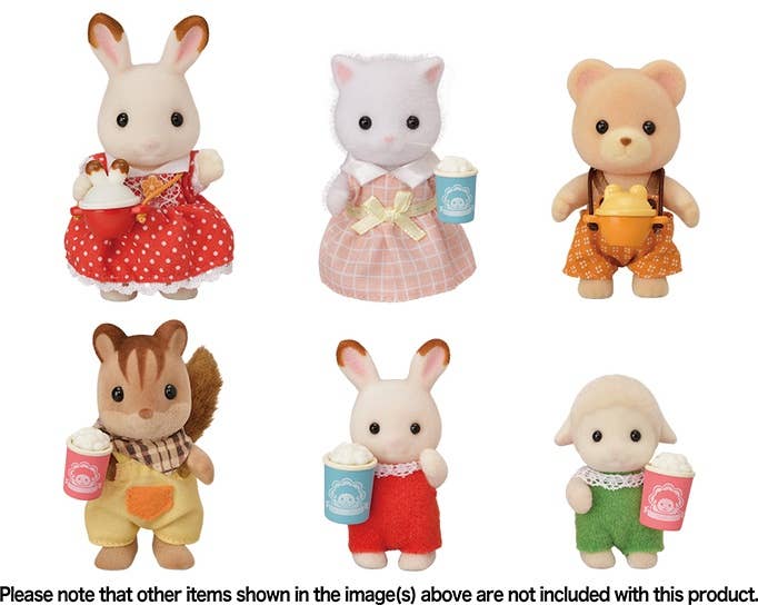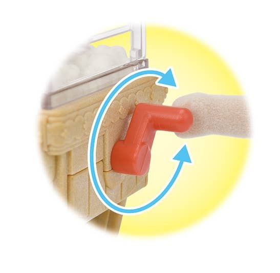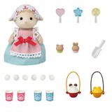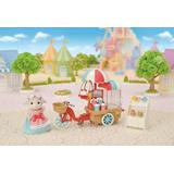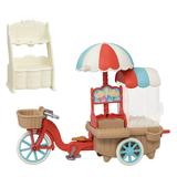 This sweet set from "Sylvanian Families" is complete and ready for play, with Barbara Dale the sheep mom and a popcorn cycle! Turn the handle at the back of the shop and watch the popcorn pop! Freshly made popcorn is ready for sale in a cup or bucket, and candy and muffins are also included. The popcorn shop can also be removed to transform it into a bicycle with a wagon behind! Order yours today!