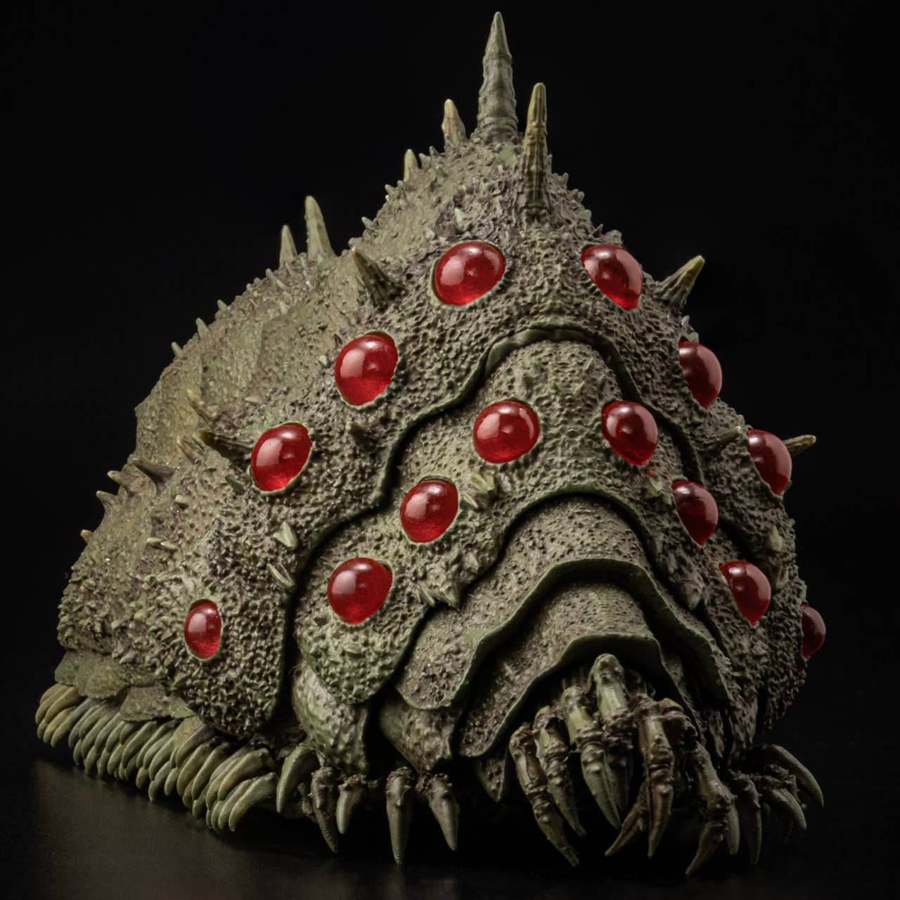 This awesome action figure of the Ohmu from the legendary anime film "Nausicaa of the Valley of the Wind" is finally available from Sentinel! Made under the full supervision of Studio Ghibli, Japan's leading animation studio, this figure was sculpted by Takayuki Takeya for precision. It's loaded with realistic texture for a true-to-life appearance -- a unique series of movable joints built inside give the figure its distinctive movement, with each segment of the outer shell moving separately! Its 14 deep red eyes are reproduced with clear parts. You'll love it -- order it for your own collection today!