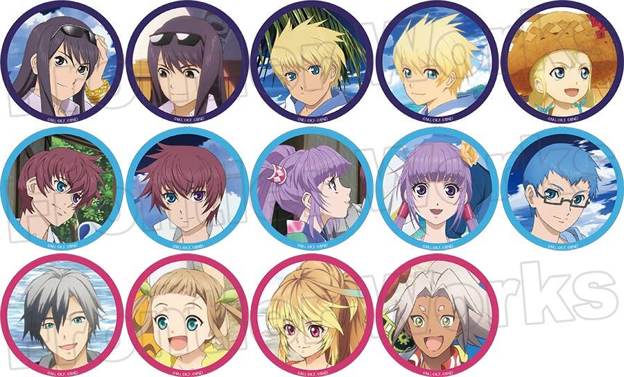 Here's a selection of color can badges featuring characters from various "Tales of" games! The images are taken from drama CD jacket illustrations, and they're randomly packed in boxes of 14. Each can badge is approximately 5.5cm. Order yours today!