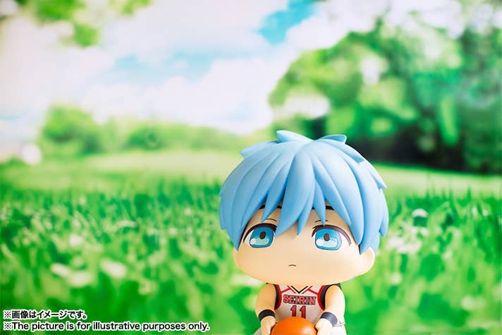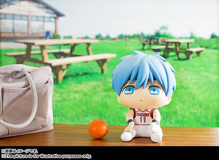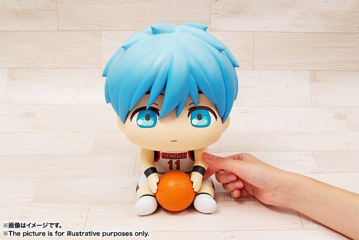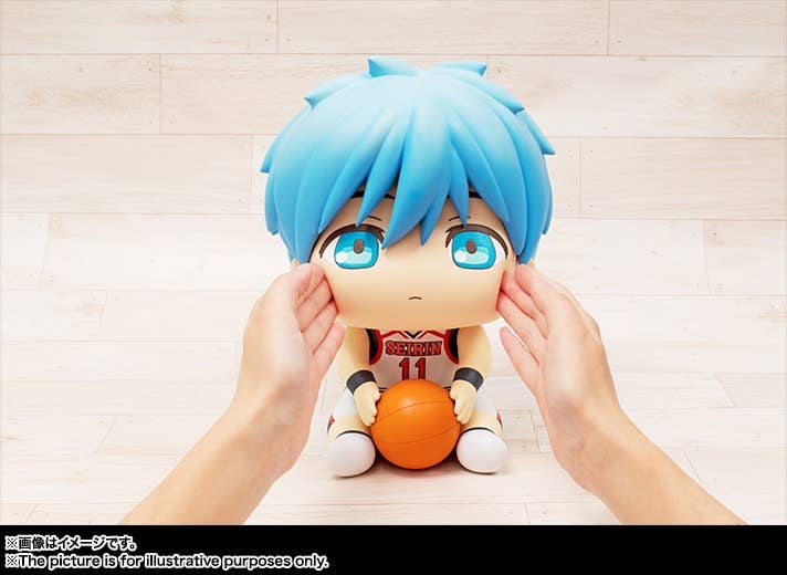 From Bandai's new Puni Puni Hoppe Doll series comes the main protagonist of "Kuroko's Basketball", Tetsuya Kuroko! This cute little Kuroko measures about 25cm tall and his cheeks are made from a soft material so you can poke or squish his cheeks to your heart's content!