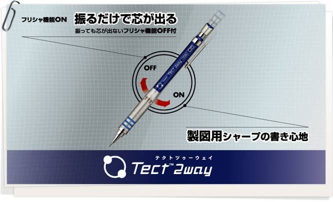 Perfect for artists, designers, or anyone who loves fine details in their work, this sleek drafting pencil from ZEBRA is professional quality and built to last! It features a handy shaker option that will allow you to extend the lead with a simple shake of the pencil. But for those who love the traditional clicker style, the shaker function can be turned off by rotating the center ring. Order today, and enjoy the convenience and quality of the Tect 2way for yourself!