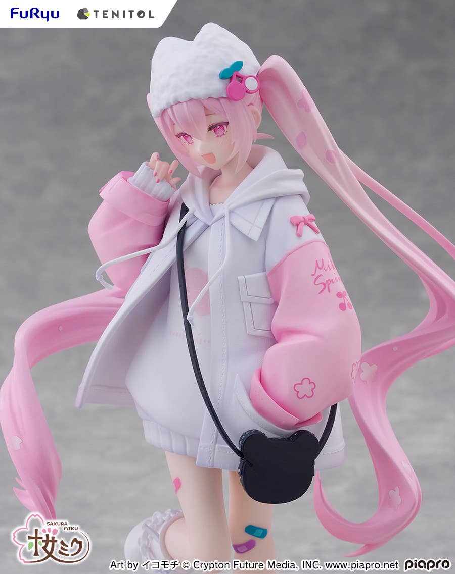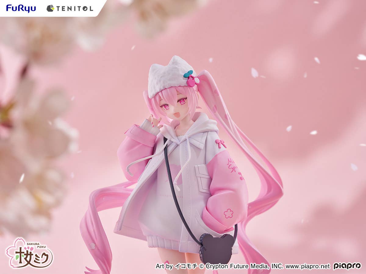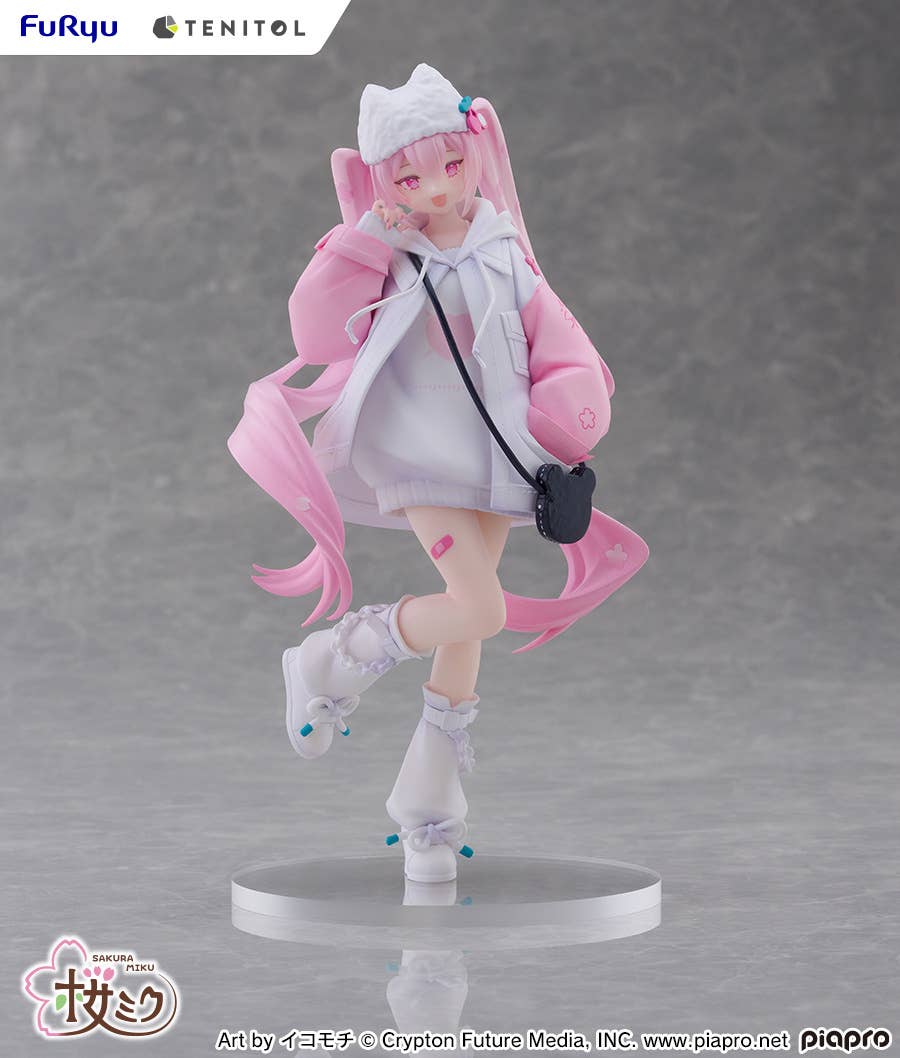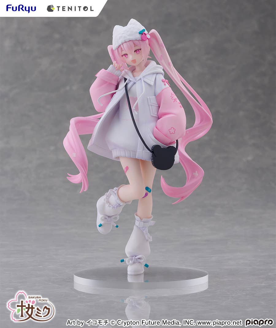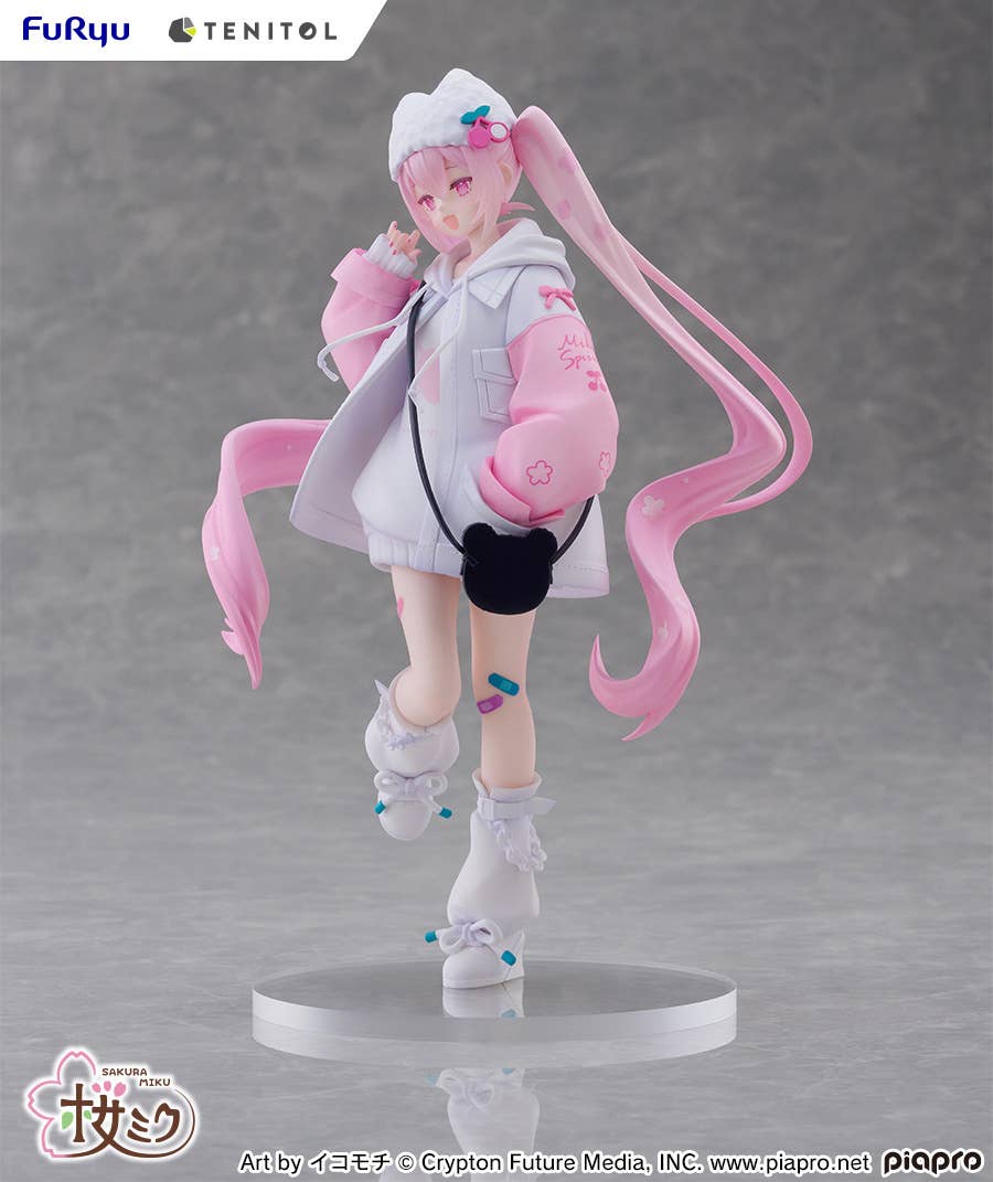 FuRyu launches its "TENITOL petit" figure series with Sakura Miku Cool Style! The illustrator Ikomochi provided the visual for this figure, which has been faithfully reproduced in figure form. Miku's original-design outfit has a fresh finish that exudes both sporty freshness and cute charm! Her base is included. Let her bring a springtime breeze into your life -- place your order today!