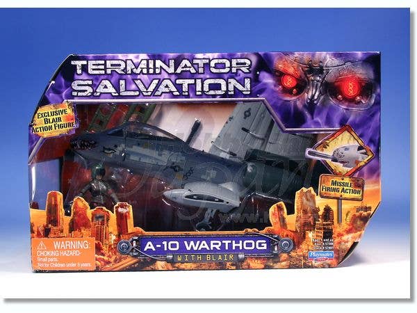 Provide air support for the human resistance with this box set that packs an A-10 Warthog with an articulated 3.75-inch action figure of the pilot Blair! The aircraft's canopy is openable for placing the articulated Blair figure inside its cockpit, and it also features missile-firing and bomb-dropping actions! This item has a Hot Toys sticker (Japanese text) on the bottom of its package to sell the item in Japan.Please note that the photos shown are of a prototype; the production version may vary. Also, figures such as this are mass produced and as a result some inconsistencies in finish and painting may occur; these are not considered manufacturer's defects. If you absolutely must have perfection, prepare to do some touch-up work on your own.