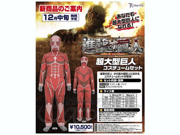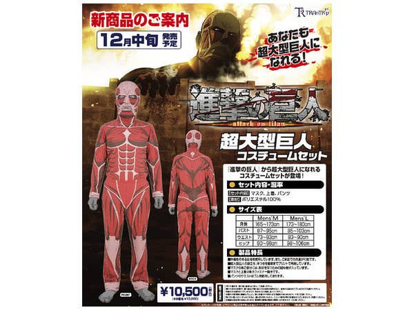 A cool costume that transforms you into the 60-meter "Colossus Titan" from Attack on Titan! See image for size info.