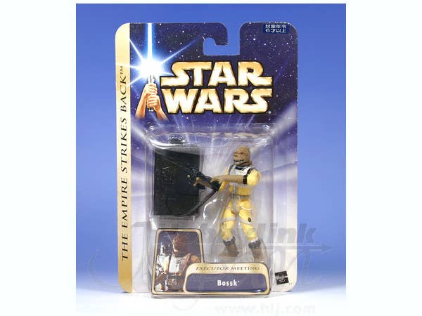 What a warehouse find! This action figure was produced by Hasbro in 2004, and has a Tomy Direct sticker on the back to sell it in Japan. Very similar to the Saga Collection figure of Bossk (also available), this lizardy bounty hunter has a face only his mother could love, and comes with a blaster rifle and a base. Quantities are extremely limited--act fast! Please note that figures such as this are mass produced, and as a result some inconsistencies in finish and painting may occur; these are not considered manufacturer's defects. If you absolutely must have perfection, prepare to do some touch-up work on your own.
