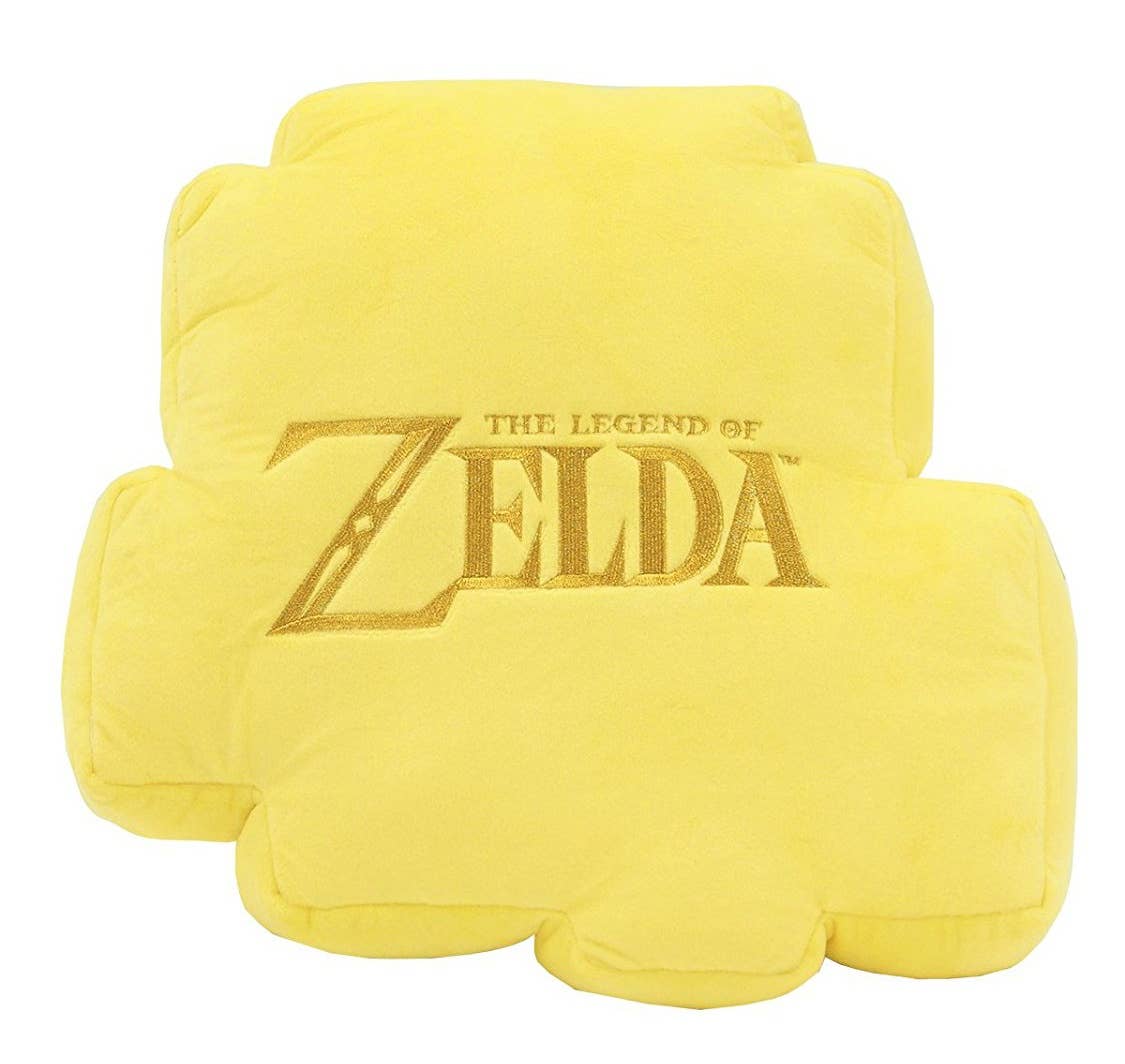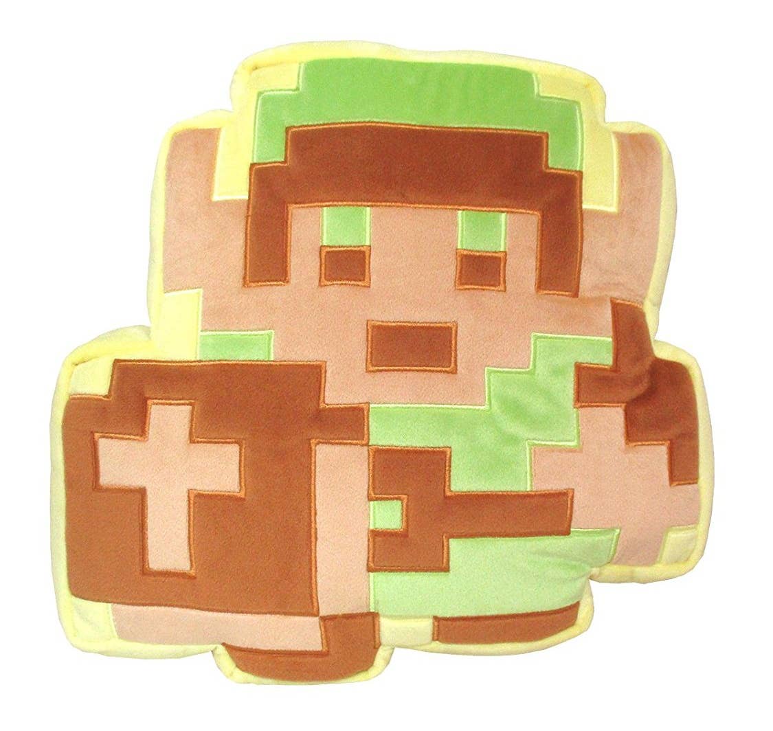 This soft cushion measures about 32cm long, 32cm wide and 5cm deep and features a pixel design of Link as seen in the very first "Legend of Zelda" game!