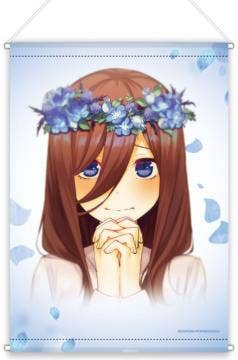 A B3-sized hanging wall tapestry featuring full color artwork of "The Quintessential Quintuplets" character Miku Nakano overtop a blue background. Don't miss out on adding this fun hanging wall tapestry to your own collection today, so be sure to order now!