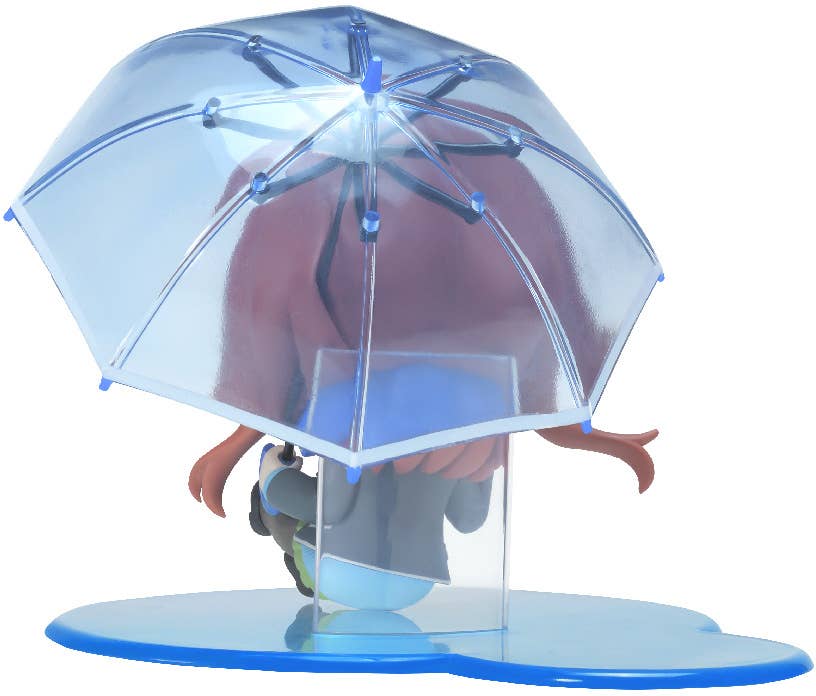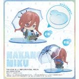 Miku Nakano from "The Quintessential Quintuplets" movie has a smile on her face, even though it's a rainy day! This charming little figure will make you smile too every time you see it -- order yours today!