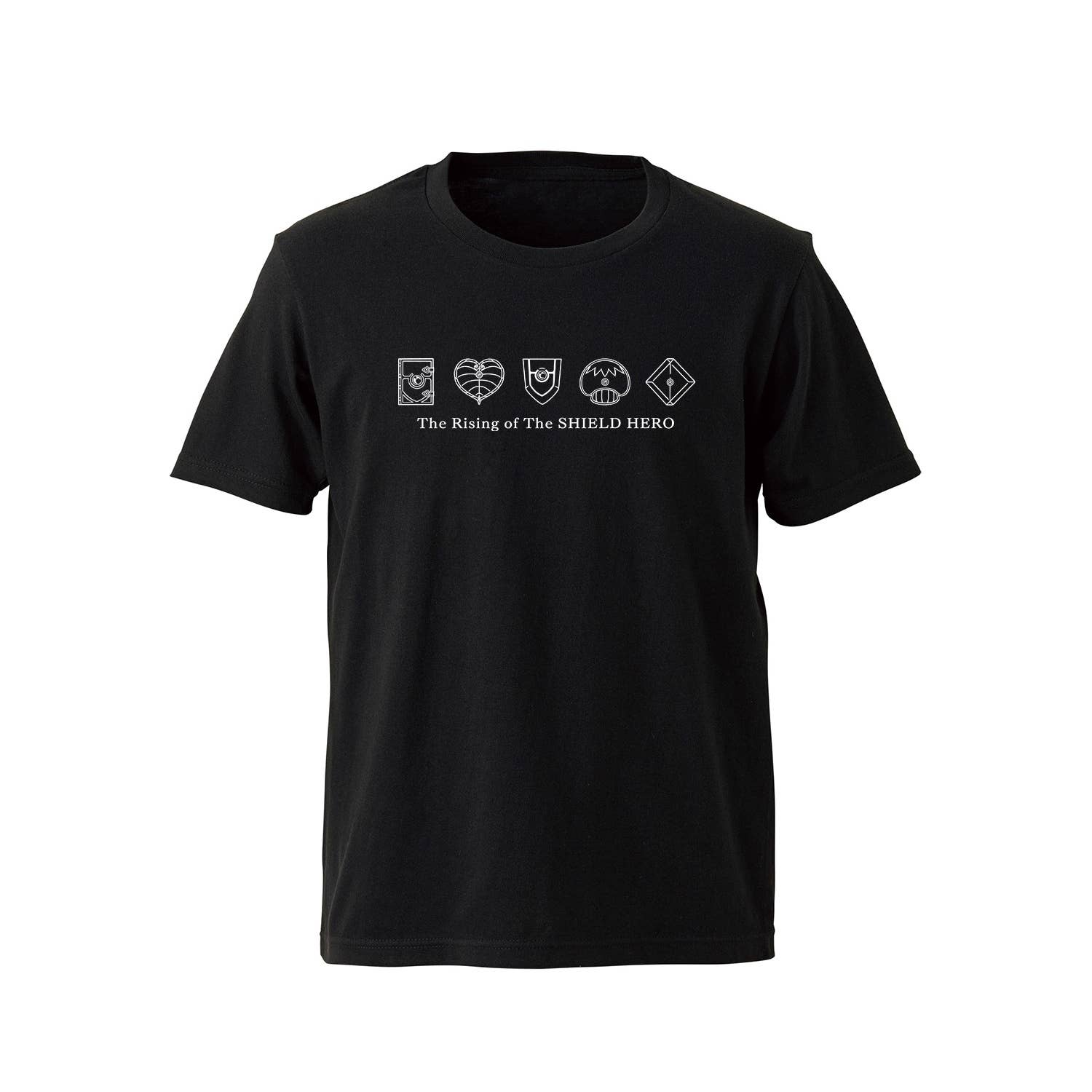 Fans of the popular TV anime series "The Rising of the Shield Hero" will definitely want to get their hands on this brand new T-shirt. This black T-shirt features white line art of various shields used throughout the series, as well as the series' title printed across the front. Add this stylish shirt to your wardrobe today, order now!