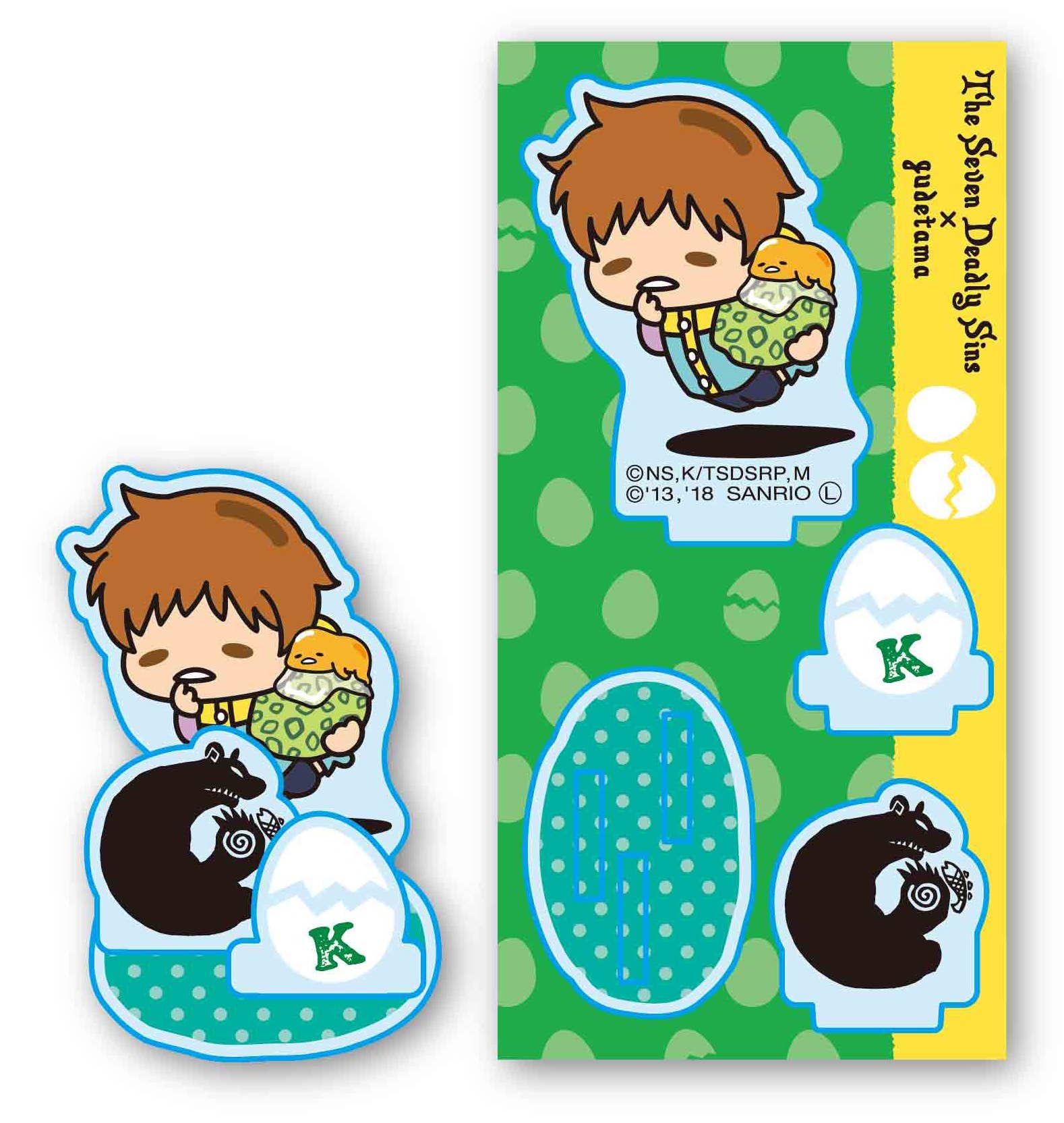 The adorable egg character Gudetama teams up with "The Seven Deadly Sins" for a whole different type of sin! This acrylic stand features King drawn in Gudetama's cute but lazy design, while Gudetama rests atop his bag. Order today!