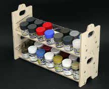 Storage shelves for lacquer paints. Stack shelves for better storage! Holds lacquer paint bottles such as Mr. Colour and Tamiya. Holds up to 14 bottles. The height of the acrylic panels is selectable. Can be changed to sliding shelves. This shelf can hold 14 bottles of Mr Colour and other lacquer paints.