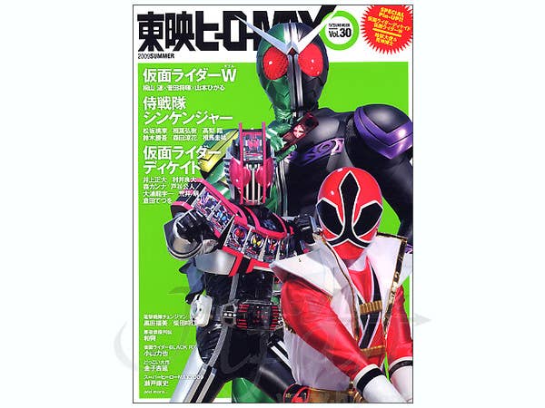 Toei Hero MAX is a quarterly magazine for fans of Toei's tokusatsu shows. This issue features Samurai Sentai Shinkenger, Kamen Rider Decade, Kamen Rider Double, Kamen Rider Decade: All Riders vs. Dai-Shocker, and more. There's also news on the latest and upcoming merchandise for ongoing and past Toei tokusatsu shows. All text is in Japanese.