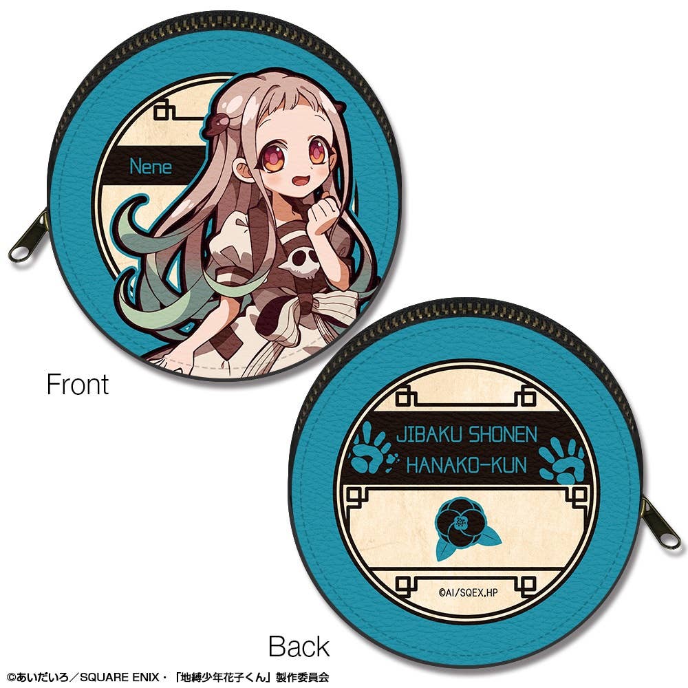 A synthetic leather round marutto case featuring full color artwork of "Toilet-Bound Hanako-kun" character Nene Yashiro overtop a blue background. Carry around your belongings safely and securely with this fun case, order yours now!