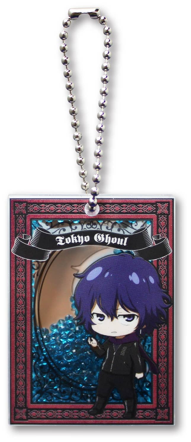 This acrylic keychain features Ayato Kirishima from "Tokyo Ghoul," and it's filled with small blue beads! There's a small mirror in the back, too. A ball chain is included to attach it to your keys, bag, purse, or just about anywhere else!