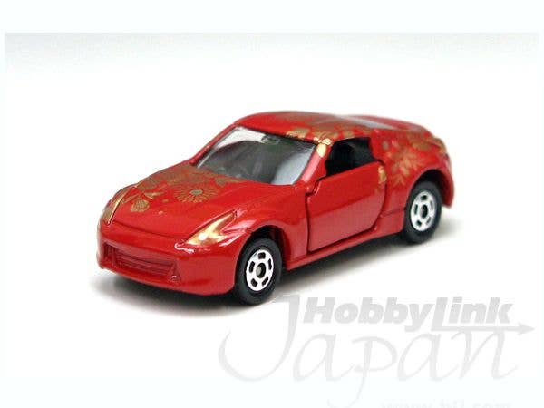 A pair of special Tomica die-cast models celebrating 40 years of Nissan's Fairlady Z! This set includes one red and one black Z34, with delicate flower patterns.