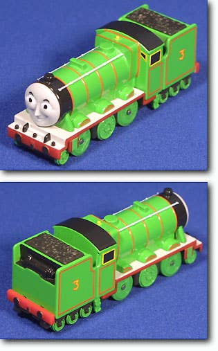 This is a lovely "alpha system" version of Henry, the green train from the popular kids' show "Thomas the Tank Engine And Friends"! Nice detail and a superb likeness, with Tomy's usual flair for recreating vehicle models! Henry will work with the Tomica Sound Map.