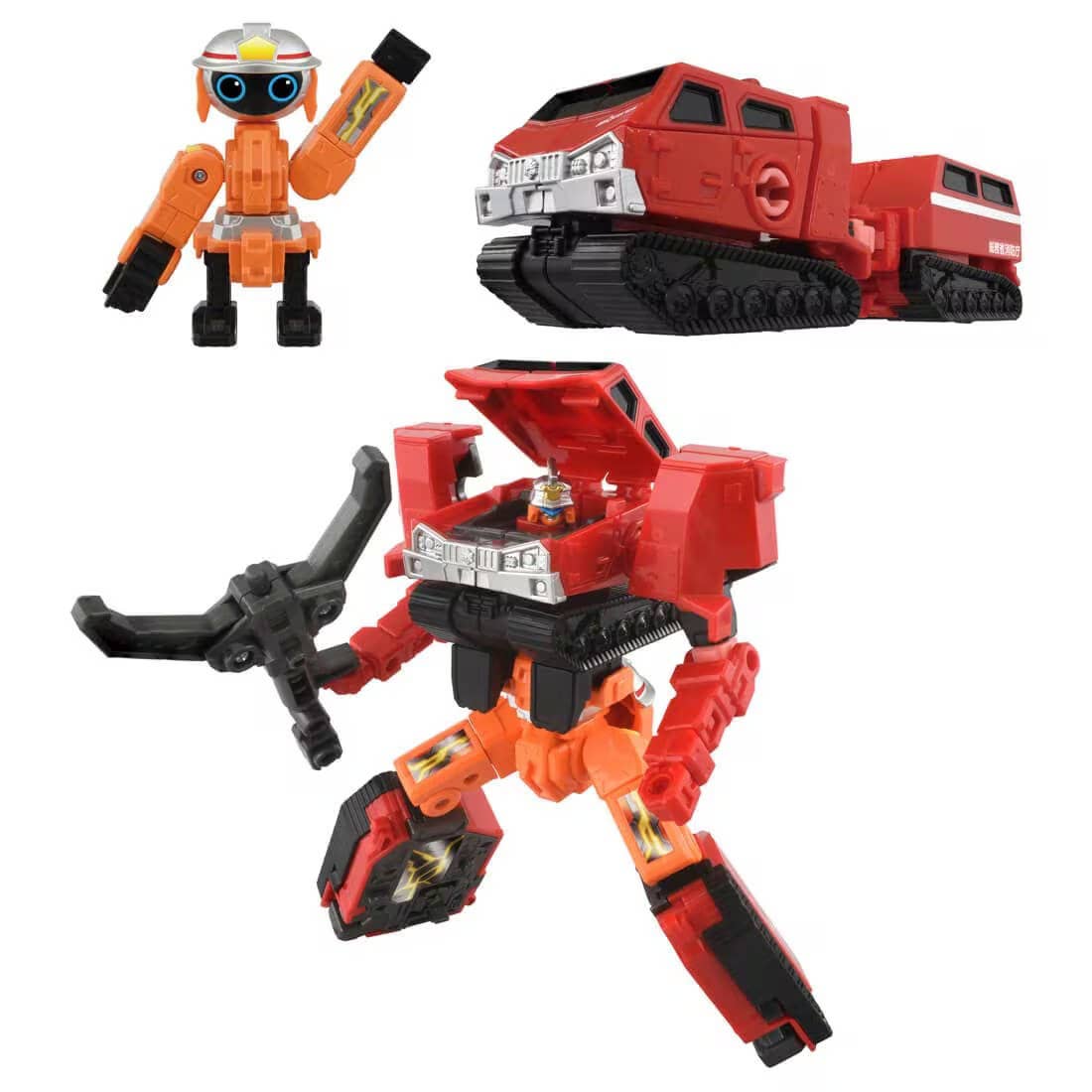 The Fire Big Job Roid and the armored vehicle Morita All-Terrain Vehicle Red Salamander combine to form the Fire Braver Morita All-Terrain Vehicle Red Salamander!