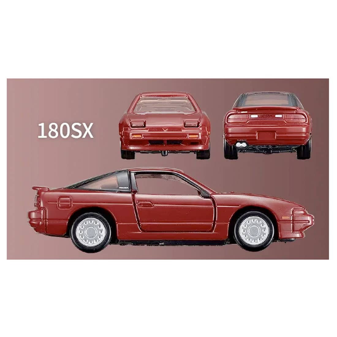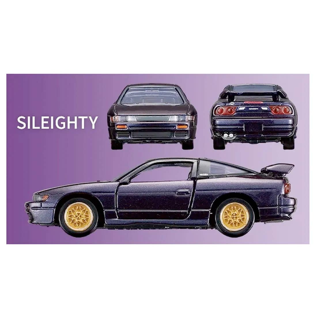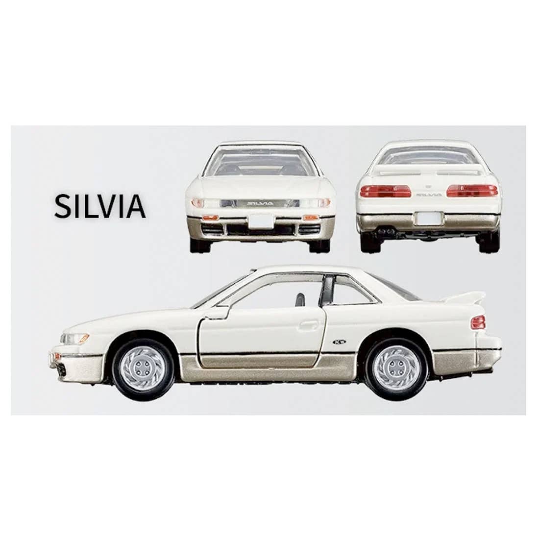 The Silvia features a working suspension, plus opening doors on both left and right. The 180SX features opening left and right doors, plus movable retractable headlights. The Sileighty has a working suspension, plus opening left and right doors.