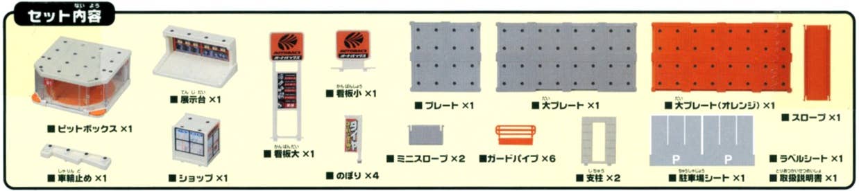 The famous Japanese car parts and service shop AUTOBACS makes an appearance in Tomica’s Town Build City lineup! This set features a turntable inside the building (which can be rotated from the outside) as well as a number of cool places to park your cars!