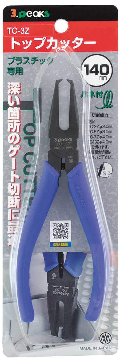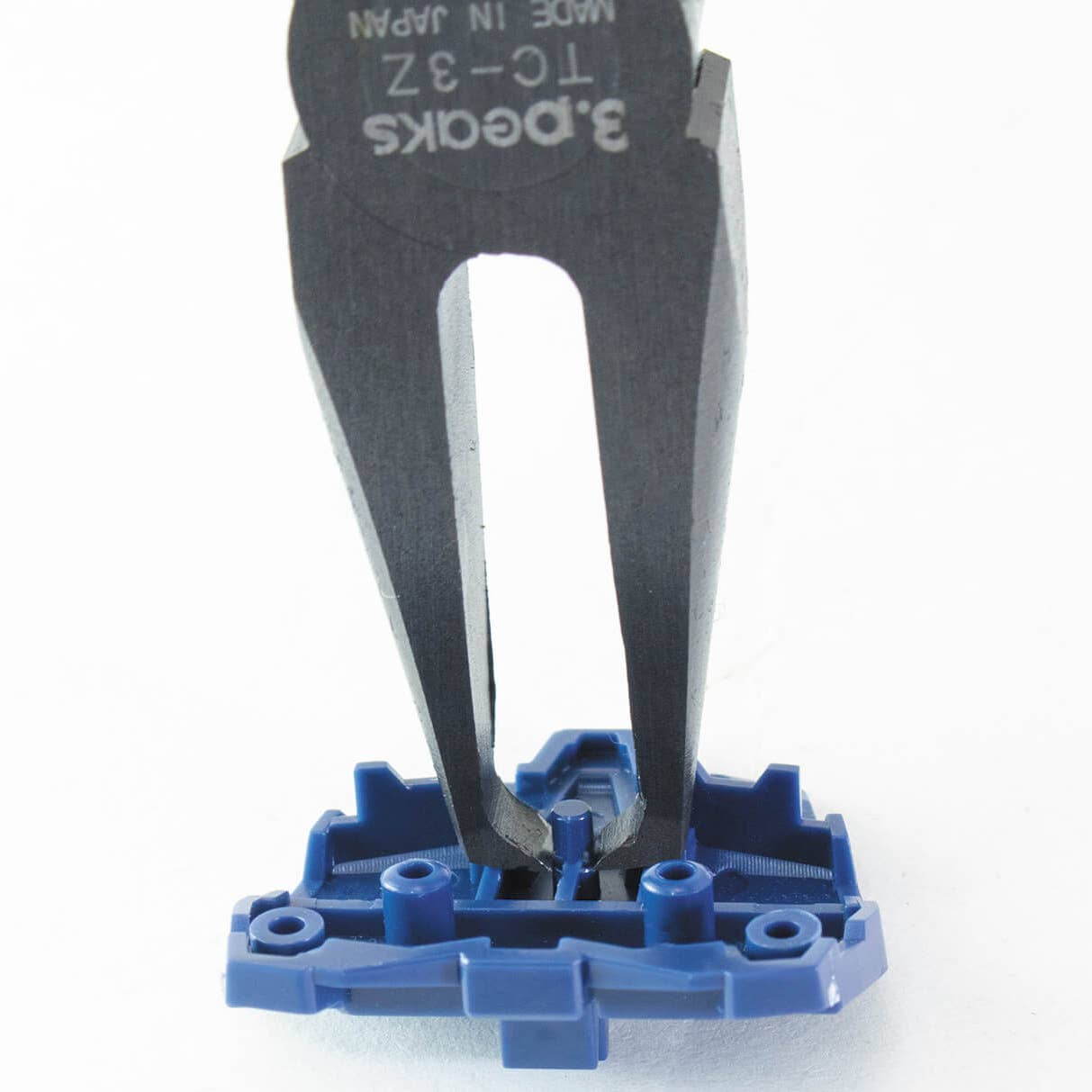 This is a bite-cut type plastic-specific top cutter ideal for cutting gates in deep areas. It allows blades to be inserted from angles that cannot be cut with standard plastic nippers.