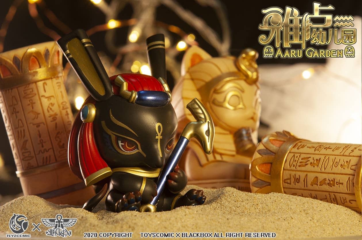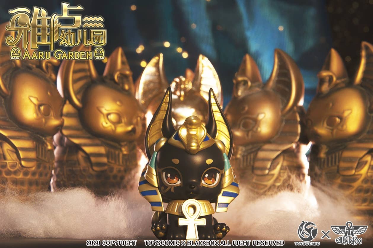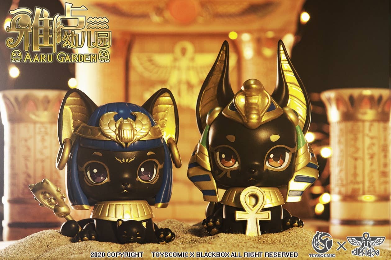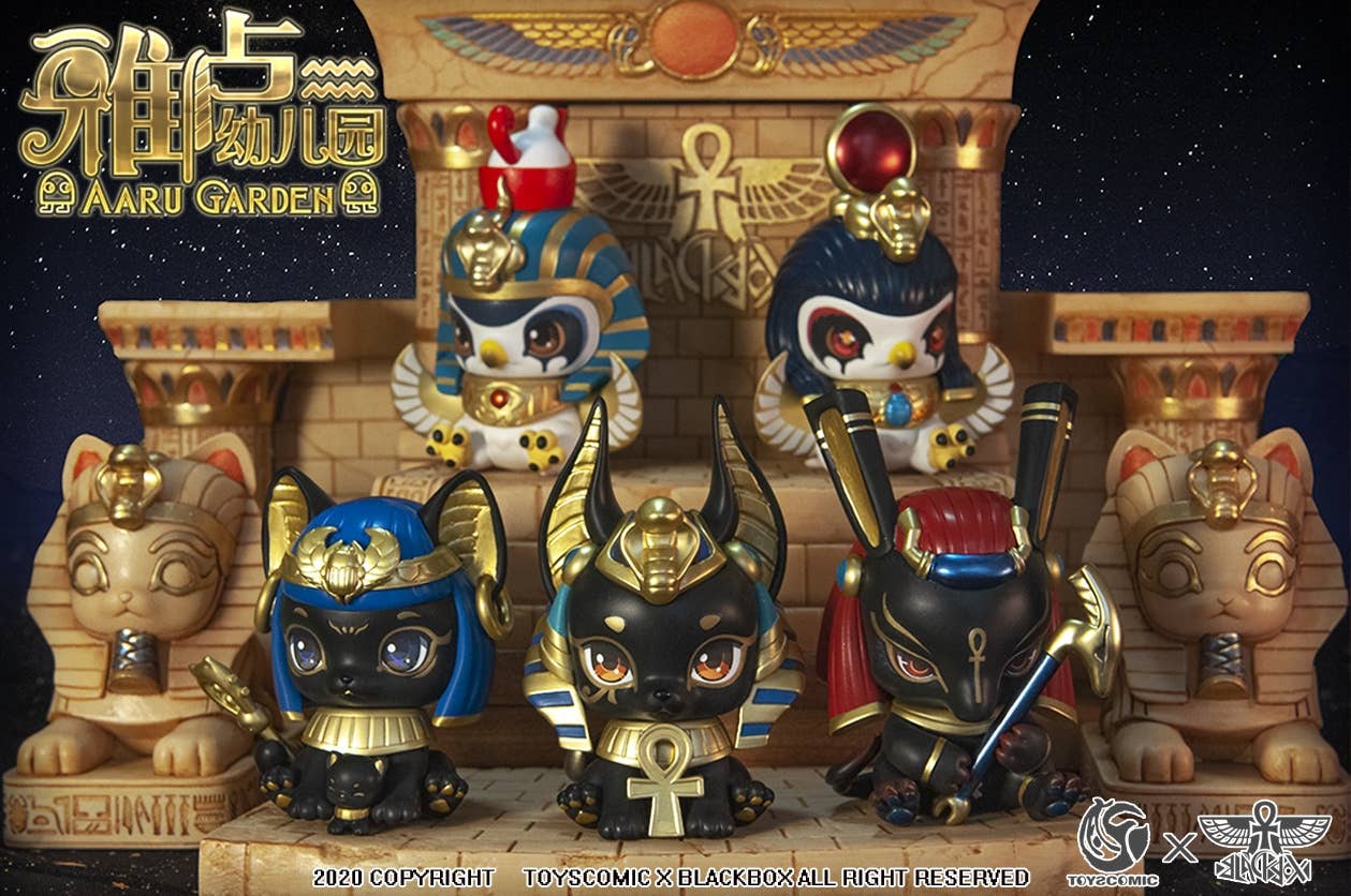 What would the mighty gods of Egyptian times have looked like during their kindergarten years? This new collaboration from Toys Comic and BlackBox brings us the Aaru Kindergarten Series -- Kindergarten of the Gods! These completely adorable little godlings are having a great time playing together; there are five types plus four secret types! They're sold randomly packed in boxes of six, so order today to find out who'll be in your own personal pantheon!