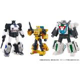 The fourth installment of Takara Tomy's "Transformers Dramatic Capture" series brings you your favorite "Transformers" characters in a premium finish! This set of three figures is inspired by the chase scene on Cybertron in the first episode of the animation. Each figure transforms from a robot into a Cybertronian vehicle. Bumblebee is an intelligence agent who is good at reconnaissance and infiltration, making the most of his small physique; Jazz is a kind-hearted second-in-command of the Autobots, and Wheeljack is an engineer who uses his intelligence to create various inventions. Various weapons are included, as is an Energon Rod that can be used to recreate the opening scene, and the shield used by Wheeljack in the chase scene. Place your order today!