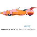 This figure reproduces the original pink-and-orange color scheme, the same as the styrofoam prototype. The head design is also based on the original. While thoroughly pursuing the style of the time based on existing materials, the joints are configured in a modern style for easy posability. A small laser gun used in the movie and other films is included as a reproduction of the anime, and it can be attached to the bottom or rear of the vehicle mode. The robot body also comes with the familiar "secret emblem," and the army mark appears when you warm it with your fingers. Foil stickers with the image of the design of the time are also included. The back is equipped with a joint hole for a stand (sold separately), so you can display her in action poses! The package illustration is a new drawing with the style of the time, and a collection card with the same illustration is included too. Even the packaging and styrofoam tray is a thorough homage to the time, bringing back the excitement of opening a "Transformers" toy in the 1980s! Order her for your own collection today!