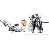 Silver Liolaeus Prime is the newest collaboration between "Transformers" and "Monster Hunter"! Prime can transform from "monster mode," based on a rare species of Rathalos, to robot mode. In monster mode, the head, neck, wings, and legs are all movable, and the mouth can be opened and closed. In robot mode, Prime can carry his sword and shield, and they can be combined into a large axe! A collaboration-style matrix is also included, and it can be stored in the torso. Order this amazing version of Optimus Prime for your collection today!
