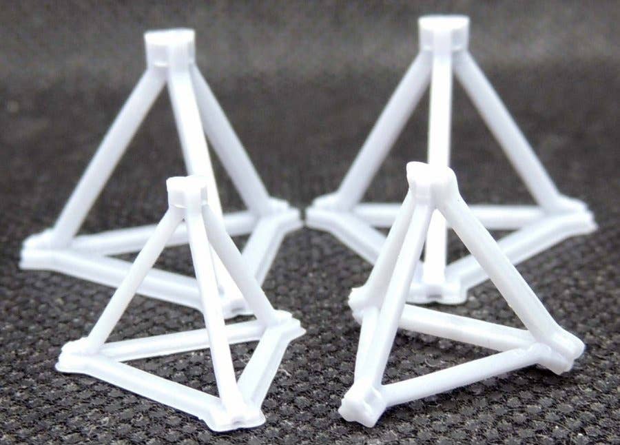 This 3D printed triangular steel barricade set is part of Pro-Hobby's Micro Gallery series; you get 10 pieces, and they are appropriate for scales from 1/144 to 1/150. It's perfect for your diorama, terrarium, or model railroad! Order yours now!