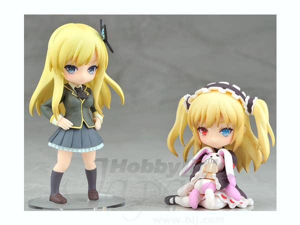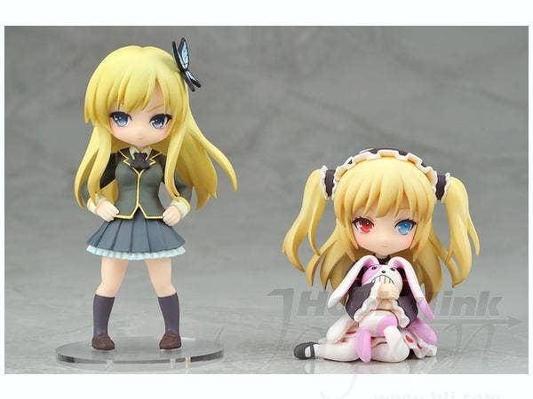 Sena Kashiwazaki and Kobato Hasegawa from "Boku wa Tomodachi ga Sukunai" are here as adorable little figures just for you! Skeptical-looking Sena is about 8.5cm tall, and Kobato (clutching her toy bunny) is about cm tall. A base is provided for each. You won't want to miss out on these little cuties--make 'em yours now!