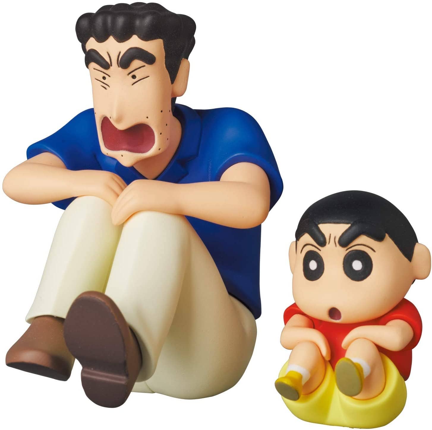 Crayon Shin-Chan and his dad, Hiroshi, demonstrate their unique talent -- walking on their butts! This Ultra Detail Figure (UDF) from Medicom is the perfect addition to your collection -- order yours today!