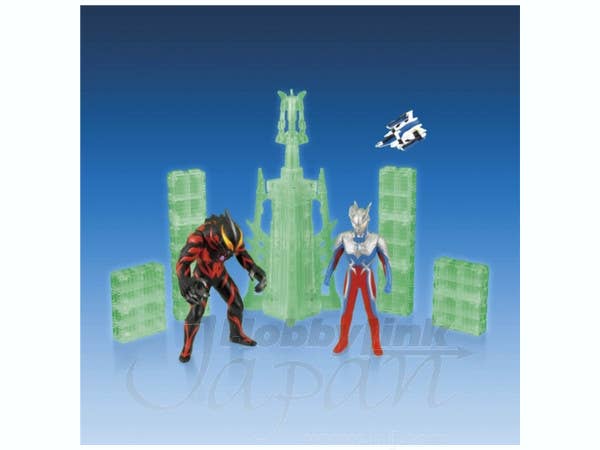 This nifty set includes Ultra-baddie Ultraman Belial, hero Ultraman Zero, the Plasma Spark Tower, and 10 blocks that can be combined to make other Ultra buildings. Also includes the Space Pendragon! Please note that the photos shown are of a prototype; the production version may vary.
