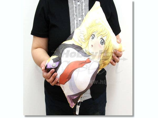 Pretty blonde Jessica from "Umineko no Naku Koroni" looks a bit surprised! Outlined with stitching for a slightly 3-D effect, her image is printed on the front of a squeezably soft pillow (the back is solid yellow), about 38cm by 25cm; the pillow is about 13cm thick. This game-prize item from Banpresto is the perfect thing for nap time or TV time, and cats will love it too! You can also take Shanon home with you--she's linked below!