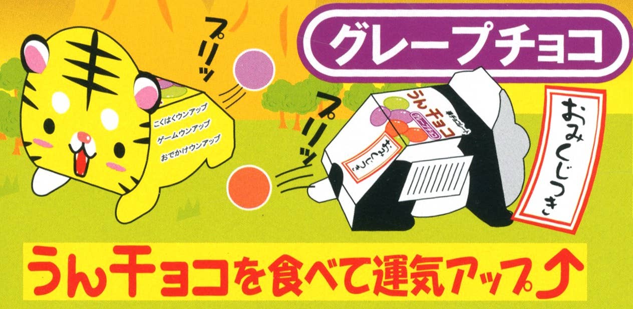 The adorable Unchoco animals are here to squeeze out some lucky chocolate for you! For each purchase, you'll receive one animal box at random, along with a packet of 18 small chocolate balls with grape-flavor coating. Each colored ball represents a different type of luck, from "good luck with games" to "good luck with e-mail" and more. See what type of luck your Un-choco animal has for you!