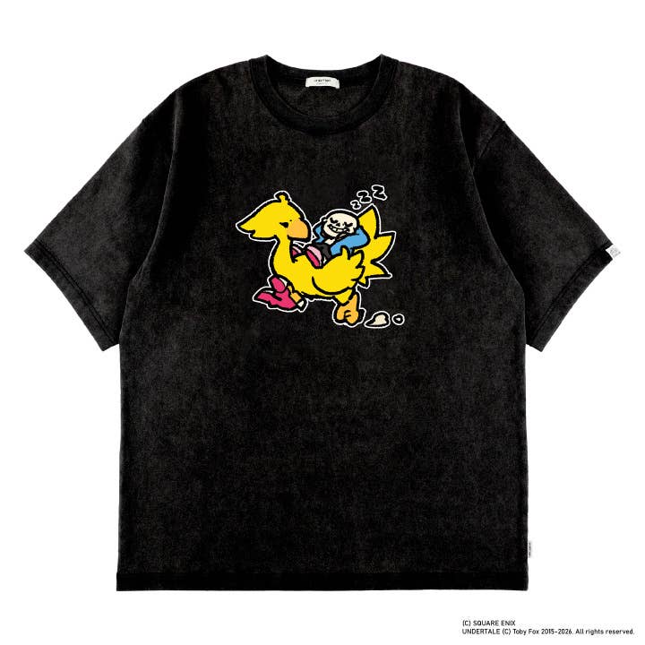 This T-shirt is from the second release of the Undertale and Square Enix collaborative apparel brand Lit Baff Apt.! It features an illustration of Undertale's "Sans" character, and the Chocobo from Square Enix's iconic "Final Fantasy" series. The illustration was drawn by Undertale's official illustrator Temmie Chang! The shirt is made from 100 percent cotton for maximum comfort and durability, with the neck rib made of 95 percent cotton and five percent polyurethane. Place your order today!