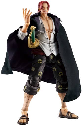 Red-Haired Shanks, captain of the Red Hair Pirates in "One Piece," returns to Mega House's "Variable Action" series! He's been perfectly recreated in 3D form, and he comes with three interchangeable faces and a set of interchangeable fisted hands; a sword and sheath are also included. His cape is made of fabric and is removable, too. Order him for your own collection today!