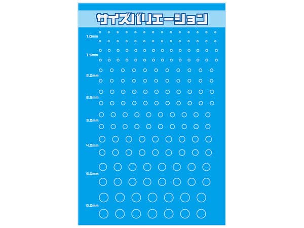 A sheet of color-shifting stickers in diamaters from 1mm to 6mm.