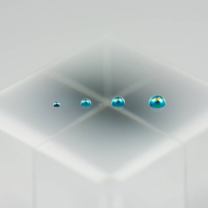 The surfaces of these glass domes shine with a mysterious color-changing effect thanks to their polarised coating! They're perfect for sensors and lenses of mechanical models, custom figures, etc. -- use your imagination! You get three each of 1mm, 1.5mm, 2mm and 2.5mm sizes, for a total of 12 pieces.
