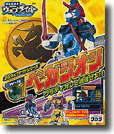In vehicle mode, it's a six-wheeled attack vehicle. In fighter mode, it's a pegasus-like creature. Emblem lights up (via two LR44 batteries) and this item can also dock individually with W-07 to form Golemon. Communicates via infra-red link to give more attacks and receive orders.