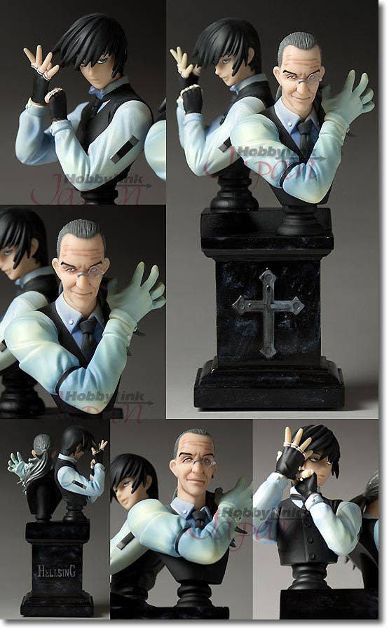 Amazingly well sculpted and painted mini busts of Walter C Dollneaz from Hellsing. It comes with a really cool stand and both busts are approximately 9cm tall. 2 excellent mini busts for the price of one! Sculpted by Takumi Abe (Capone-dan).