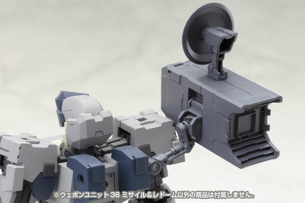 Weapon Unit 36 Missile & Radome returns to Kotobukiya's "M.S.G (Modeling Support Goods)" series! It includes a hatch-expanding missile and a search radome unit. By using the "Frame Arms" arm attachment, it can also be used as a shoulder part for "Frame Arms" model kits. The missile features 3mm joints in various locations, allowing for flexible assembly. The missile warhead snaps into place on the back of the unit, making it easy to paint different parts. Order yours today1