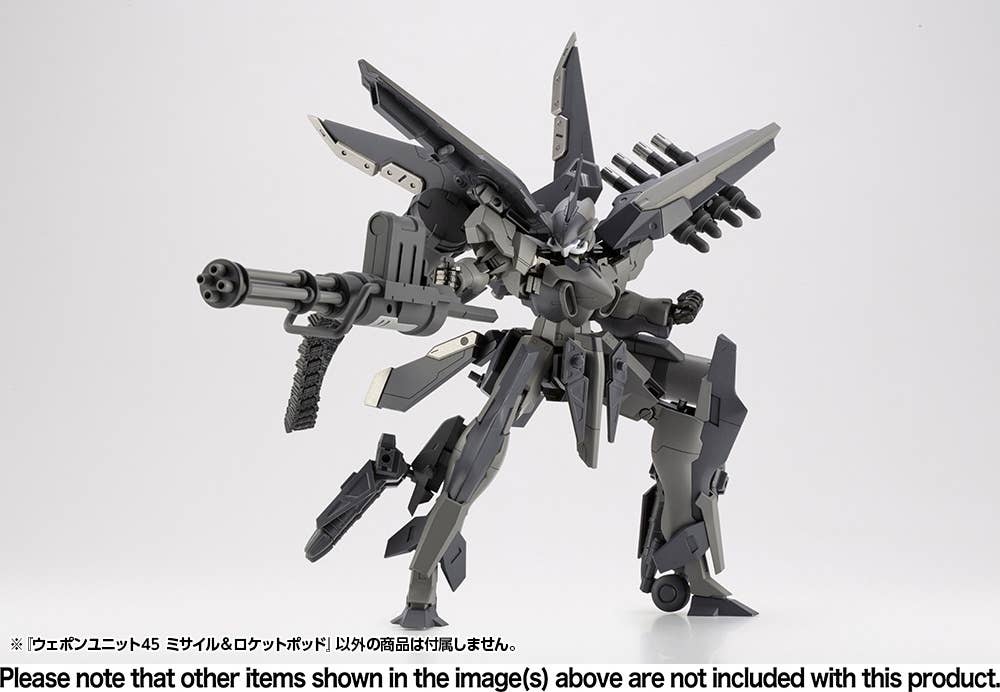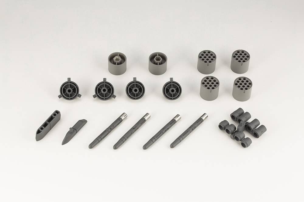 This set of missiles and rocket pods, a simple yet powerful addition to Kotobukiya's "M.S.G (Modeling Support Goods)" lineup, returns to help you improve your mecha model kits! The missiles can be removed from their pylons, and the articulated pylon base allows for horizontal deployment.