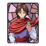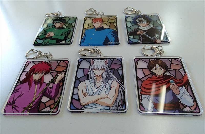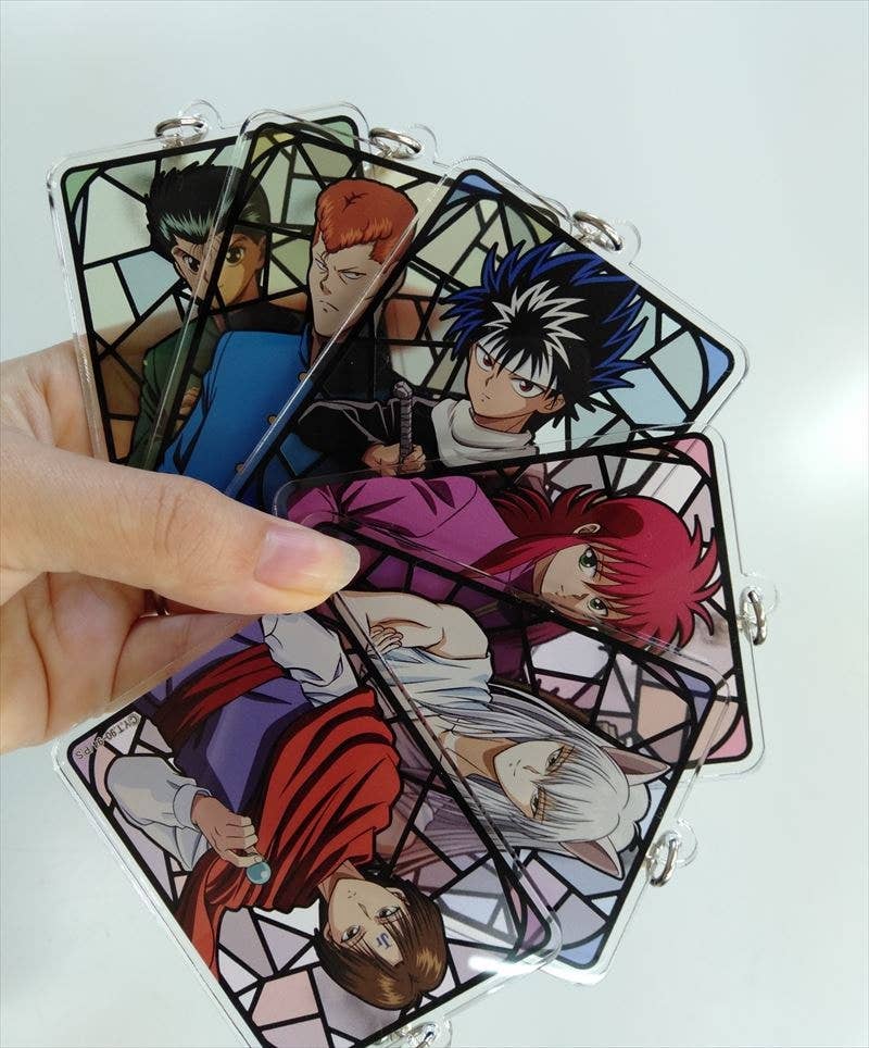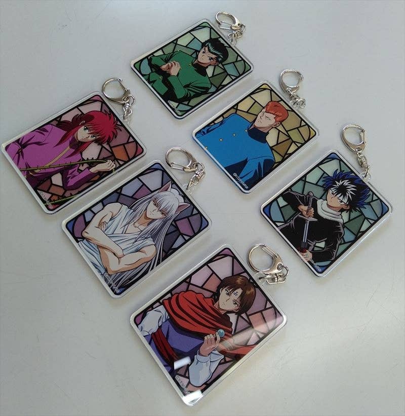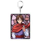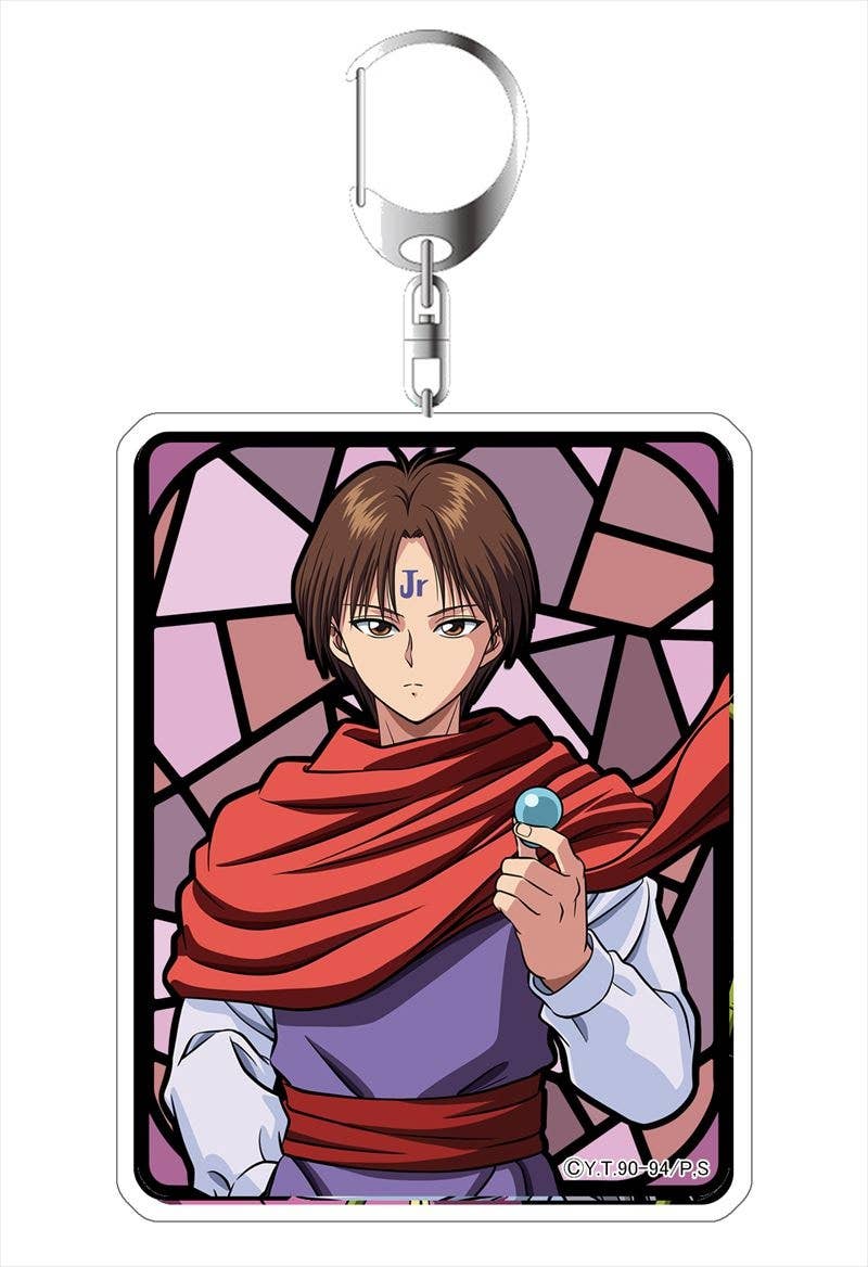 An acrylic keychain of Koenma from "Yu Yu Hakusho" featuring a new illustration! Koenma appears in front of a reddish stained glass-style background. Includes an attached C-hook clasp.