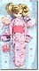 Very sweet Licca doll comes dressed for a festival, wearing a yukata (sort of a light summer kimono, usually worn during festivals); she comes with a matching bag, a fan, and a pair of sandals. A figure stand is included to keep her upright on display.