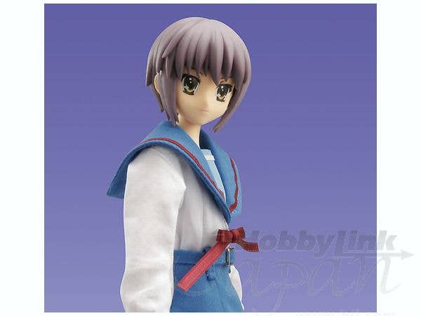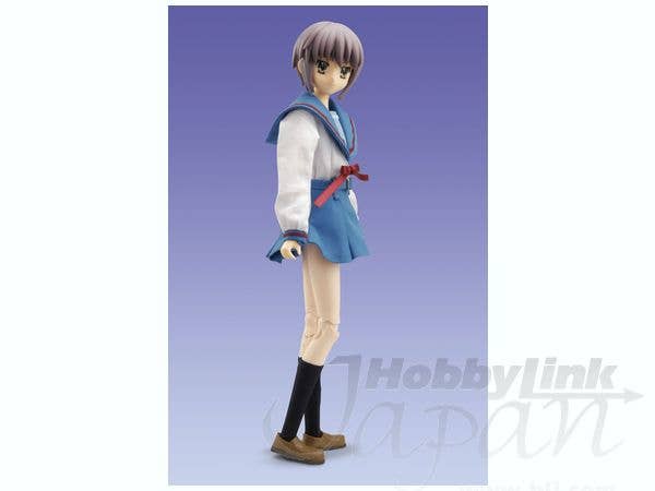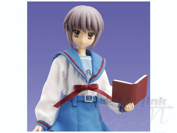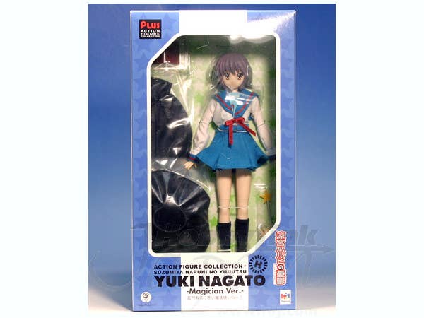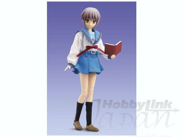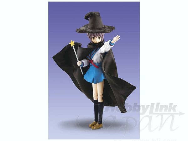 The female characters from immensely popular "The Melancholy of Haruhi Suzumiya" are offered now as action dolls in MegaHouse's Action Figure Collection Plus series! The second member from the SOS Brigade featured in this series is the silent bookworm, Yuki Nagato! Standing 23cm tall, Yuki comes dressed in a masterfully stitched fabric school uniform that fits perfectly on her articulated Obitsu doll body. Her hair is molded in PVC so she'll never have a hair out of place! Accessories include a pair of optional hands, book, magician's cap and mantle, magic wand, and two pairs of Nagato's metal frame glasses.