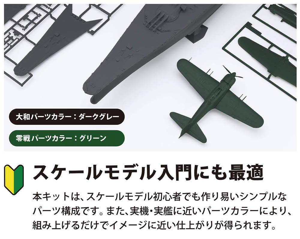 When completed, the Yamato will measure about 585mm long, and the Zero Fighter will measure about 127mm long. The Yamato features 282 parts, and the Zero includes 53 parts for assembly.