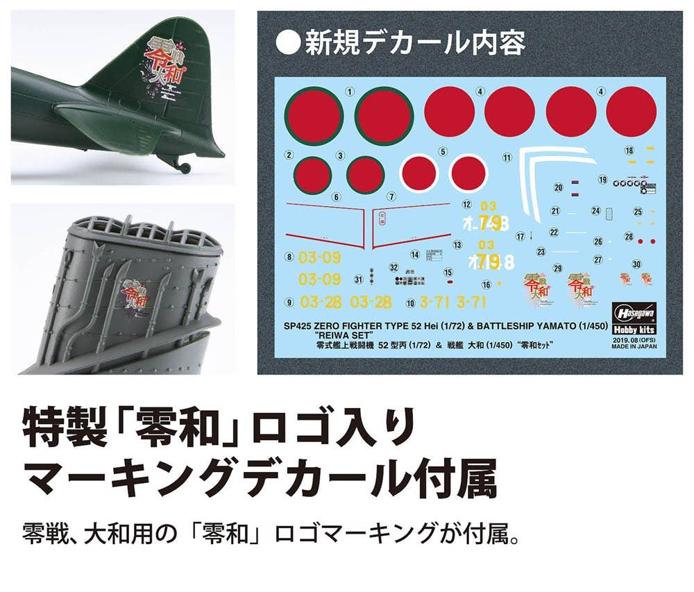 This limited edition set from Hasegawa was made to commemorate the new Reiwa era in Japan, and includes a 1/450 scale kit of the IJN Battleship Yamato and a 1/72 scale kit of the Mitsubishi A6M5c Zero Fighter Type 52 Hei!